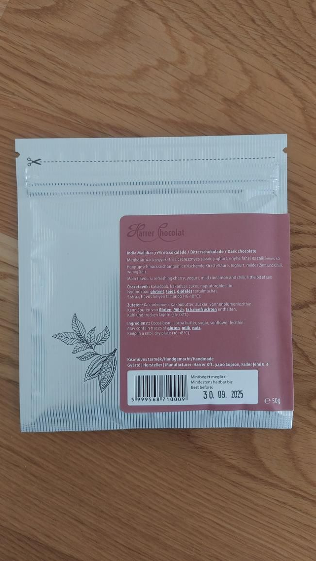 50g dark chocolate from India, 71% cacao content, notes of cherry, yoghurt and cinnamon.