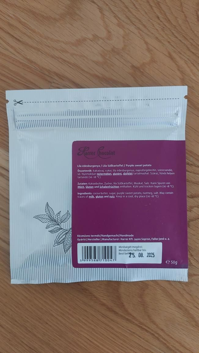 Vegán zöldséges kakaóvaj tábla lila édesburgonyával.