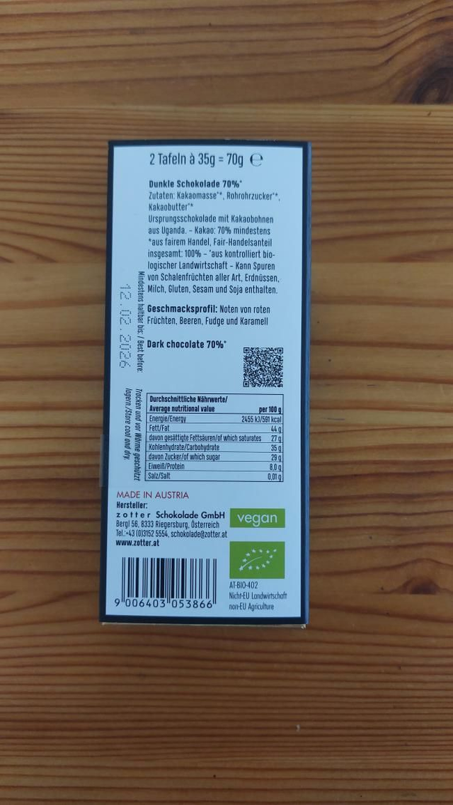 Zotter 70% dark, Uganda